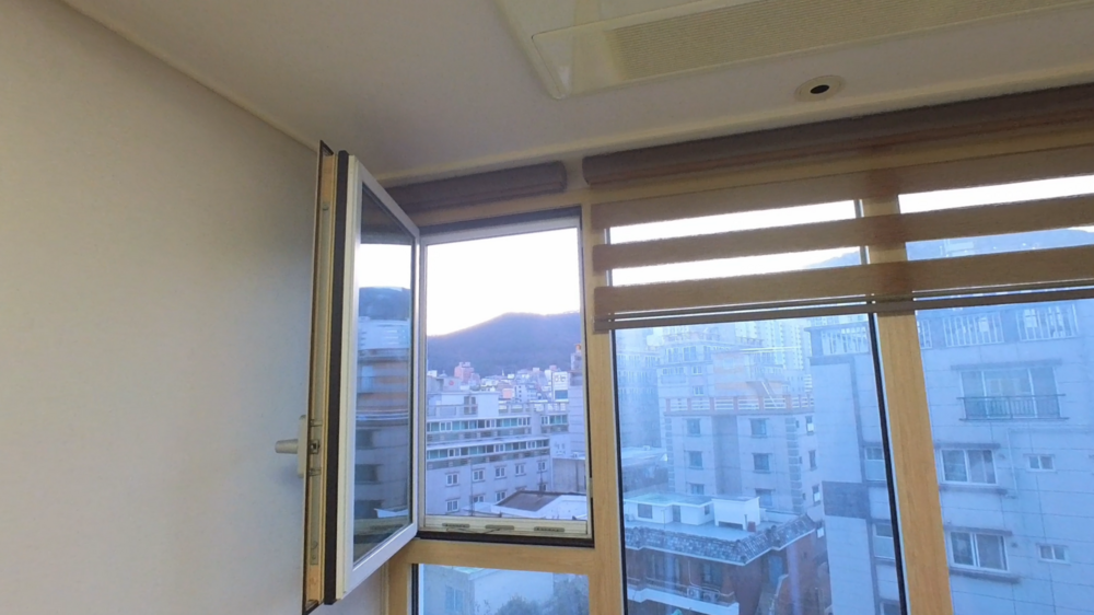 - 시스템 창문 구조에 적합한 롤방충망 설치.